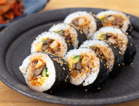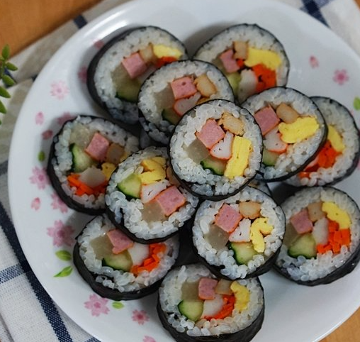 밥을 김으로 감싸 둥글게 만 뒤 잘라낸 음식이며, 위에 김을 깐 뒤 밥과 재료들을 얹고 말아낸 음식이다.