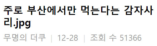 글쓴이 A씨는 “주로 부산에서만 먹는다는 감자사리.jpg” 라는 제목의 글로 네티즌들의 시선을 모았다.