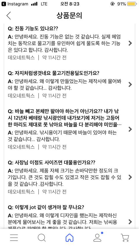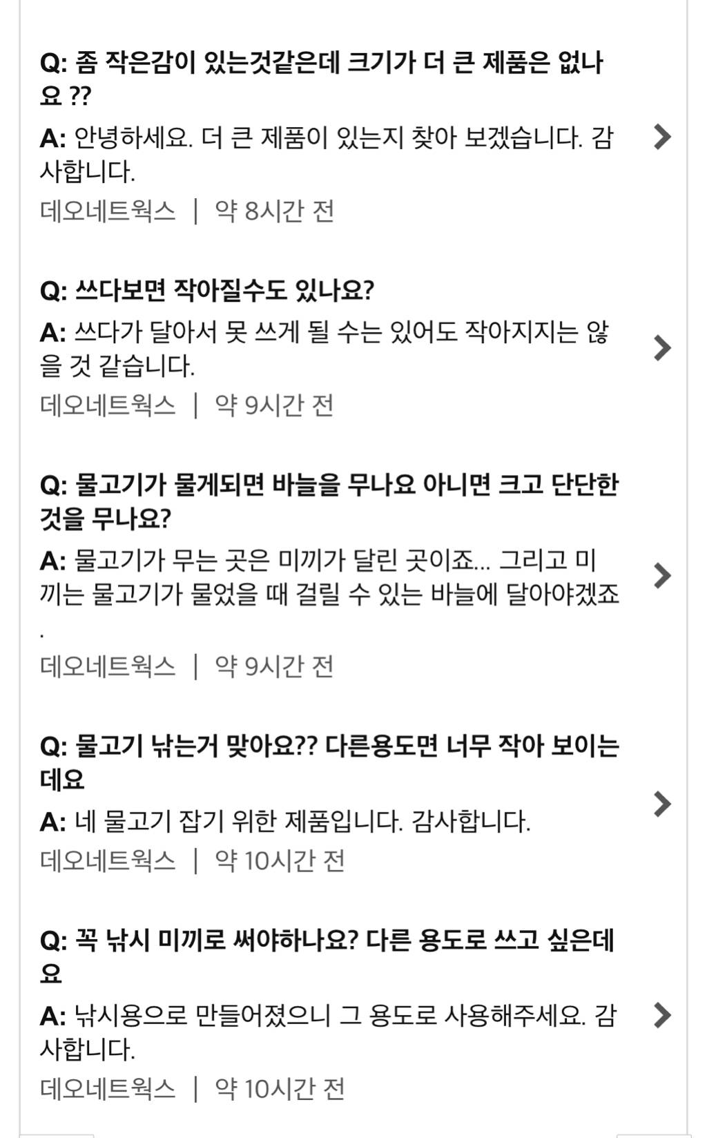 당혹스러운 댓글들에 일일이 답글을 달아주며 “왜 이렇게 만들었는지는 제작사에 물어봐야 할 것 같다”, “바늘을 뺄 수 있는 것 같다”, “낚시용으로 쓴다면 바늘을 뗀다면 의미가 없는 제품이죠” 등의 글을 남겼다.