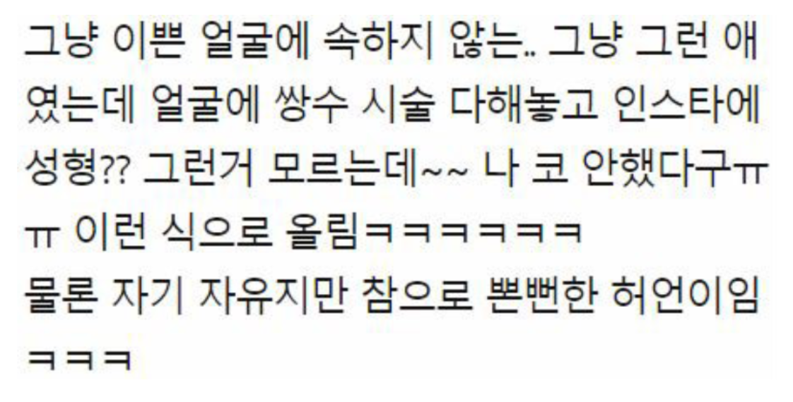 그리고 이쁜 사람들을 보면 수술했으면서 안했다고 얘기를 하는 사람들도 있다고 한다.