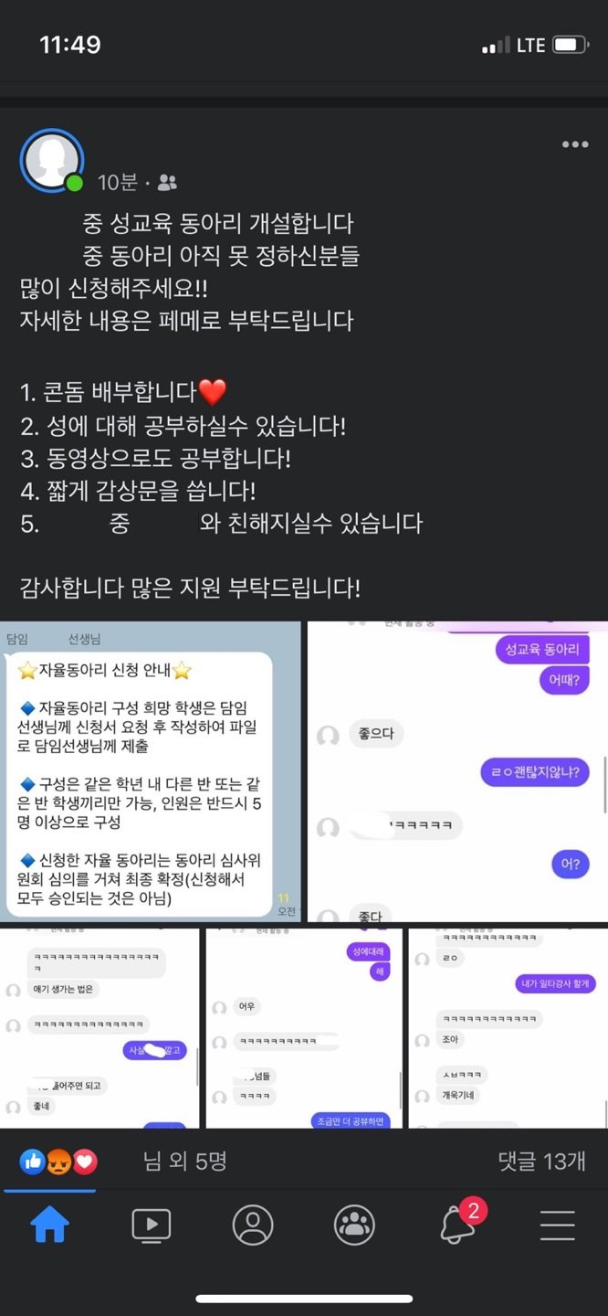 학생들은 “성교육 동아리 정말 좋은 것 같다. 아이가 생기는 방법을 배울 수 있는 건가”라며 해당 동아리 관련하여 이야기를 주고 받았다.
