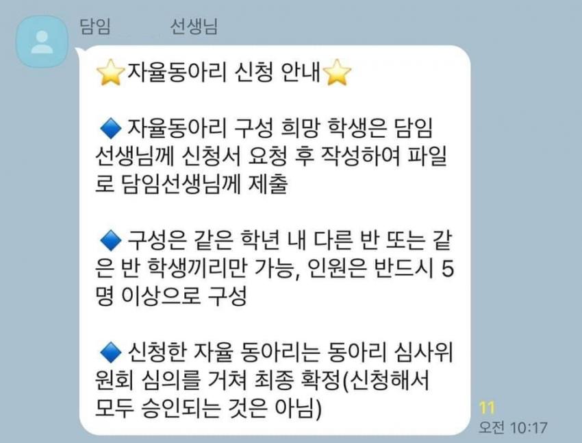 해당 동아리는 자율동아리로써 아무나 간단하게 신청하여 가입할 수 있었고, 해당 학교를 다니는 학생들의 대화까지 담겨있었다.