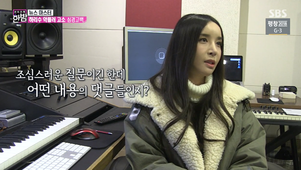 최근 하리수는 SBS ‘본격연예 한밤’에 출연해 악플러를 고소하게 된 심경을 밝혔다.