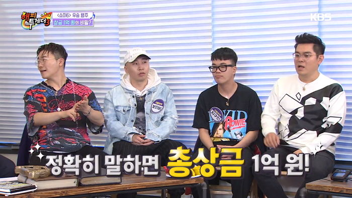 그러자 행주는 “사실 많은 분들이 1억 받는 줄 알아서 그렇게 말하고 다녔는데 속사정은 많이 다르다”며 “정확히 말하면 쇼미의 ‘총상금’이 1억원”이라고 말했다.