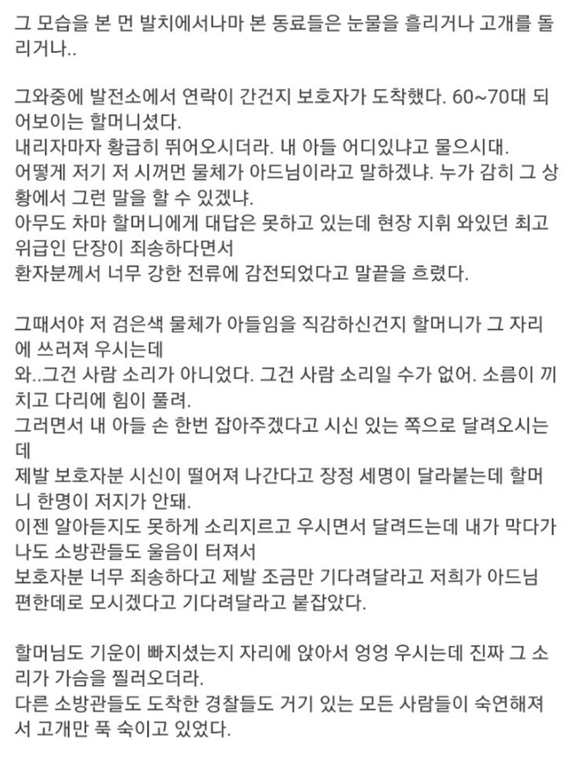 글쓴이는 발전소에서 일어난 감전사고를 신고받아 출동한 상황이었다.