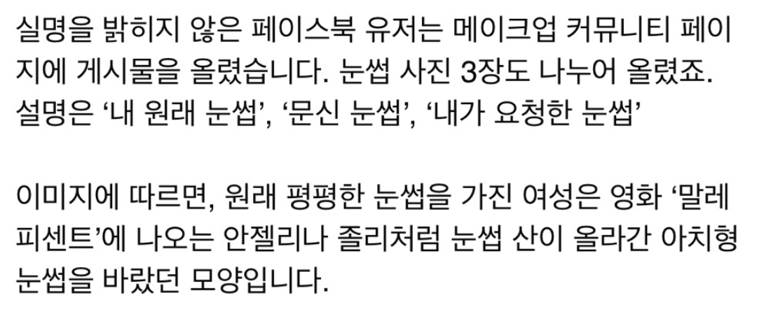 A씨는 “샵에다 교정 요청을 했는데” 라 첫 문장을 전했다.
