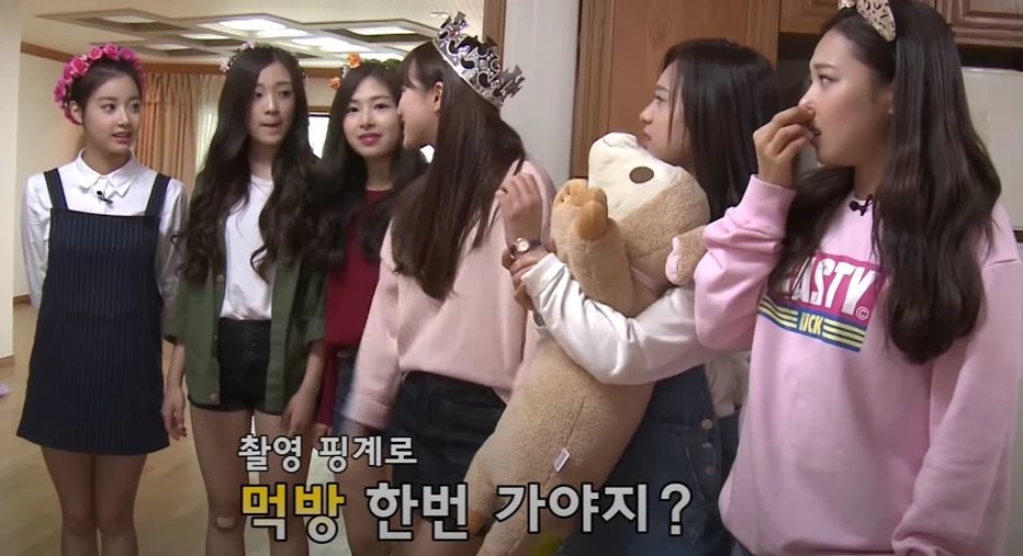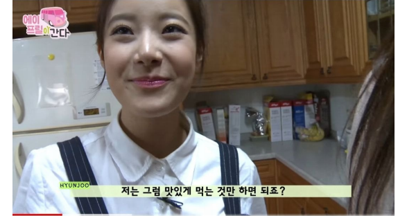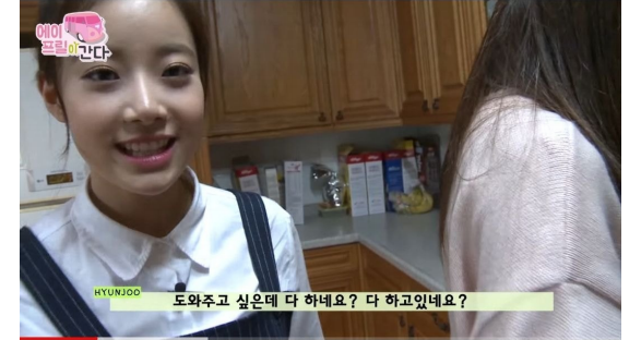 에이프릴 멤버들 사이에서 잔뜩 쫄아있는 현주의 모습, 멤버들 사이에 끼지 못하는 현주의 모습을 지금부터 함께 살펴보자.