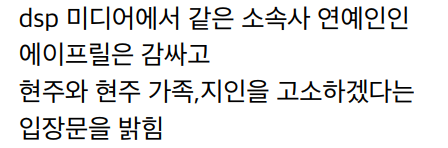 최근 한 온라인 커뮤니티에는 “숙소에서도 에이프릴 멤버들 눈치 보는 게 일상이었던 전 멤버 현주” 라는 제목의 글이 올라왔다.