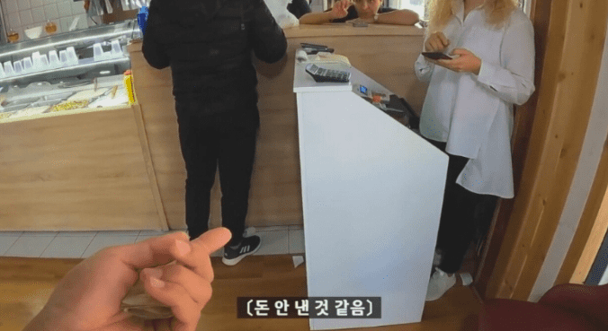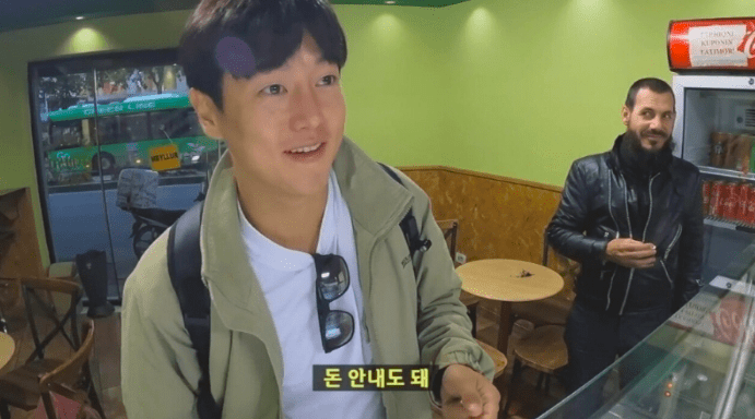 체코제는 한 아담한 가게에서 먹을 것을 구매한 뒤, “돈을 안 낸 것 같다”라며 카운터로 다시 갔다.
