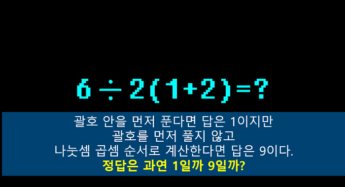 나눗셈 곱셈 순서로 계산한다면 답은 9이다.