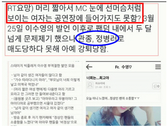 또 그녀는 “가수 따라다니지마라”, “부모님이 너희 이렇게 낳으려고 미역국 먹었냐”라 선을 넘는 망언을 서스럼없이 뱉었다.