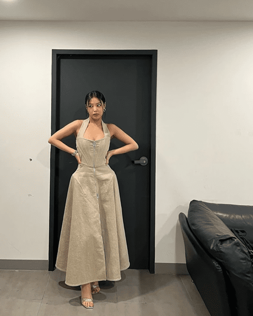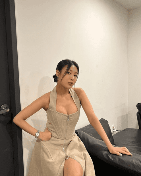 게시된 사진 속 유빈은 대기실에서 베이지색의 타이트한 드레스를 입은 모습으로 당당한 포즈를 취하는 모습이었다.