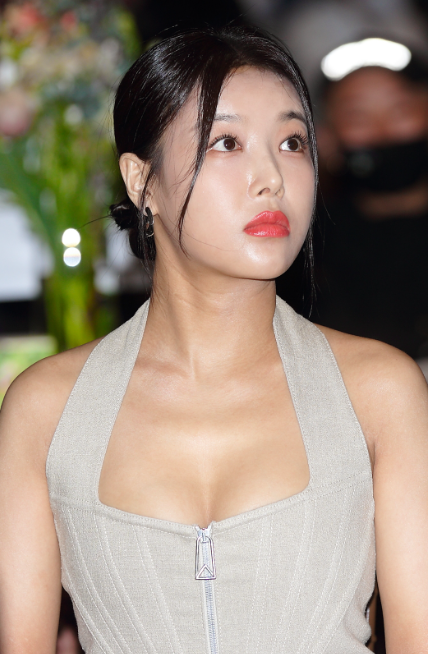 이날 유빈이 입은 드레스로 인해 볼륨감 있는 몸매를 뽐내며 당당한 표정을 취했다.