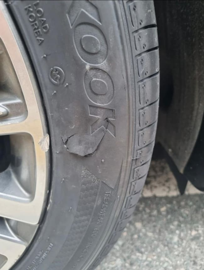 당근마켓 사용자는 찢어진 타이어 사진을 올리며 “한국타이어 벤투스 타이어 신품급 중고 판매합니다”라며 글을 올렸다.