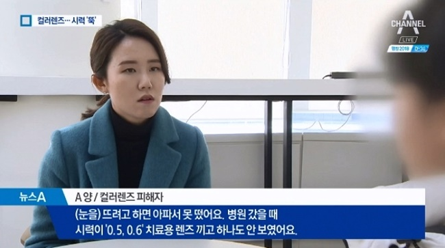 그러나 ‘채널 A 뉴스’에서는 한 여중생이 컬러렌즈를 잘 못 착용해 시력을 반 이상 잃었다고 알렸다.