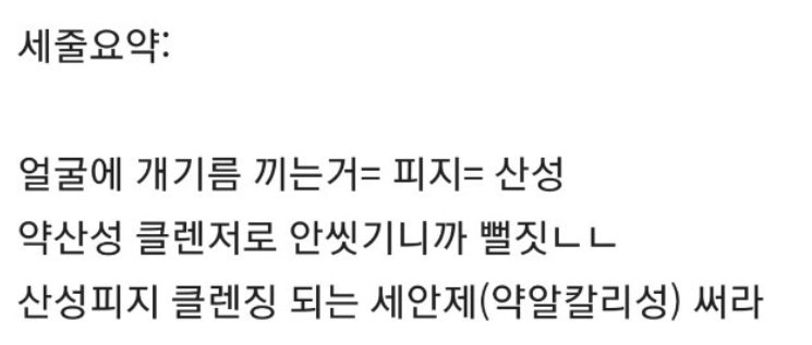 A씨는 “사람 얼굴에 나는 개기름=산성” 라 첫 문장을 전했다.