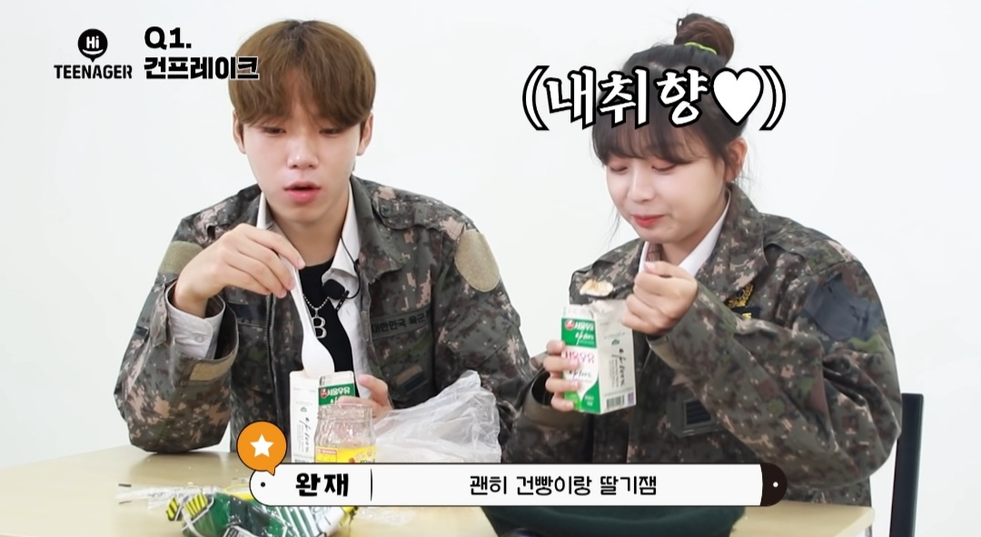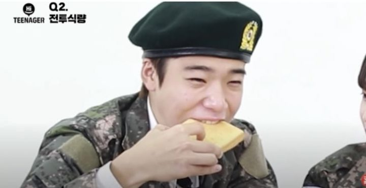 2020년 10월 유튜브 채널 ‘하이틴에이저’에는 ‘훈녀 여고생들의 군대 음식 첫 경험’이라는 제목으로 전투 식량을 먹어보는 내용이 올라왔다.
