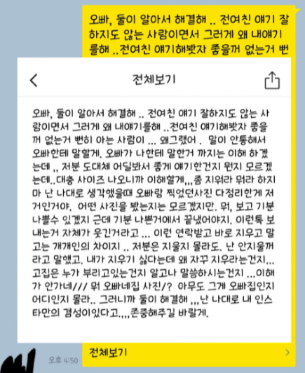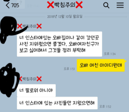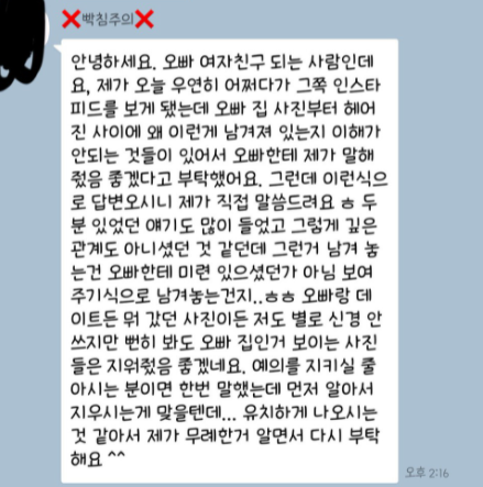 “제 남자친구 전여친한테 어려운 부탁도 아니고, 눈에 띄지 말라고 카톡 보냈더니 이딴 식으로 답장오네요”