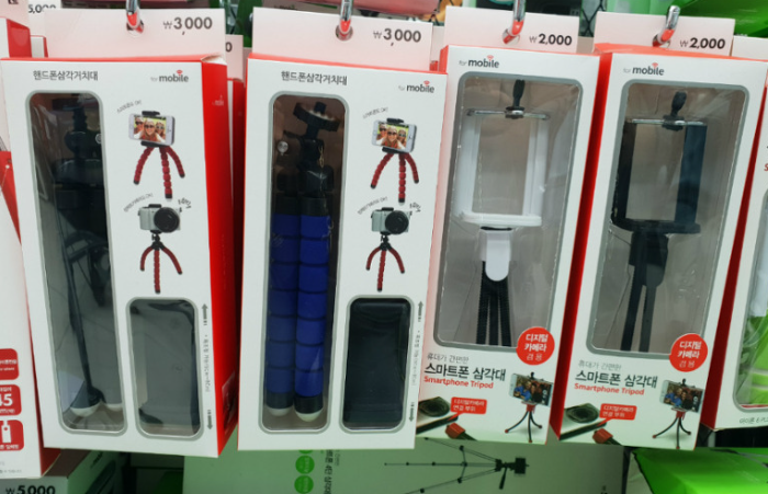 다이소에서 판매 중인 스마트폰용 삼각대는 2~5천원이지만 정말 그 정도의 퀄리티다.