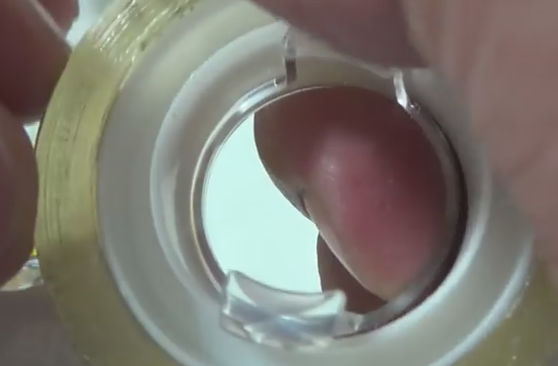 이 스카치테이프는 낱장을 떼어내어 보면 투명하지만 떼어내기 전에 롤 형태로 말려 있는 것은 노란색으로 보여질 것이다.