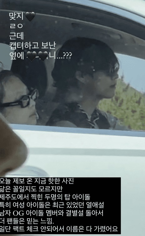 제주도에서 한 차량에 같이 탄 남녀가 사진이 찍힌 모습이 뷔와 제니랑 너무 닮았기 때문이다.