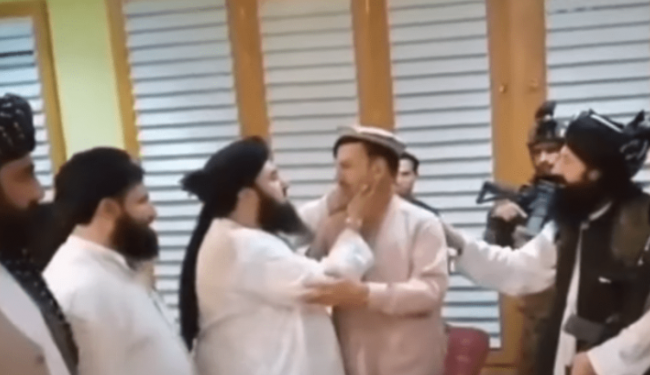 공개된 영상 속 아슈라프 가니 아프간 대통령의 동생 하슈마트는 탈레반 지도부와 웃으며 악수했다.
