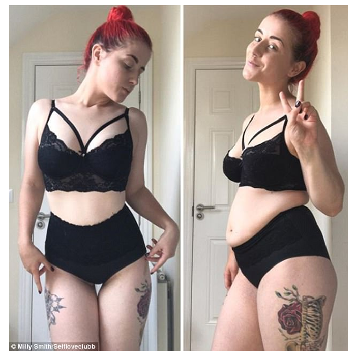 영국에 거주하는 밀리 스미스(Milly Smith)는 똑같은 타이츠를 입고 똑같은 날 찍은 사진 두 장을 인스타그램에 올렸다.