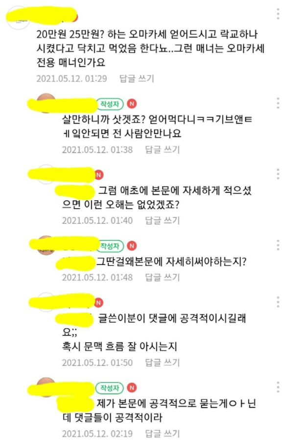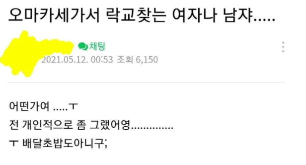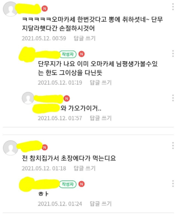 이러한 글쓴이의 의견에 네티즌들은 “오마카세가 대단한 것도 아닌데 이런 거로 잘난척하지 마세요.”, “저는 일본에서 100만 원 먹었는데 락교도 먹고 생강도 먹고 사이다도 먹었는데요?”라는 반응을 보였다.