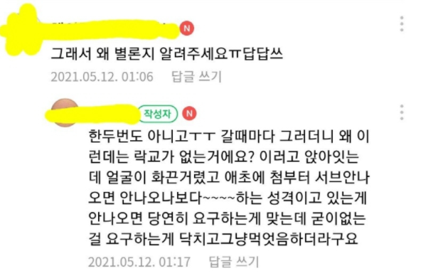 거센 반응을 본 글쓴이는 “한 두 번도 아니고 굳이 없는걸 요구하는 게 정말 이해가 안 가고 그냥 닥치고 먹었으면 좋겠어요.”라고 답했다.