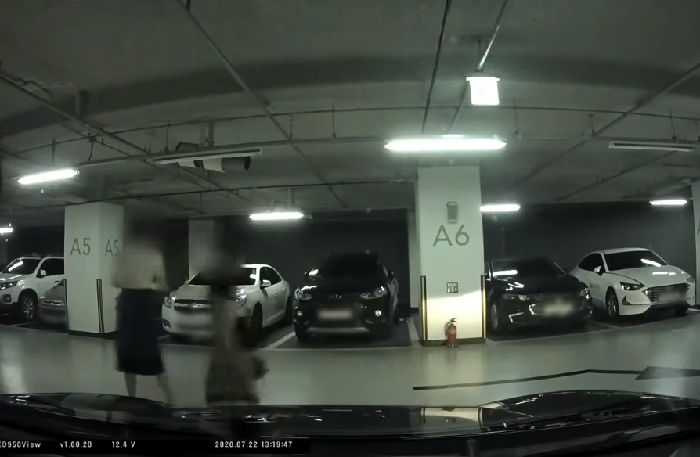 이후 옆자리에 주차한 여성 운전자는 태연하게 차량에서 내렸다. 그는 내리면서 부딪친 곳을 살펴보고 그냥 지나쳐갔다.