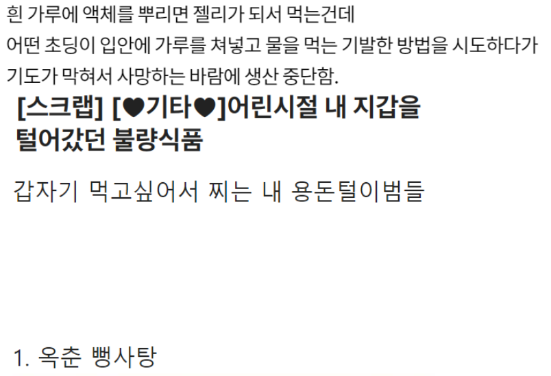 작성자 A씨는 “어린시절 내 지갑을 털어갔던 불량식품” 라는 제목의 글로 많은 이들의 궁금증을 증폭시켰다.