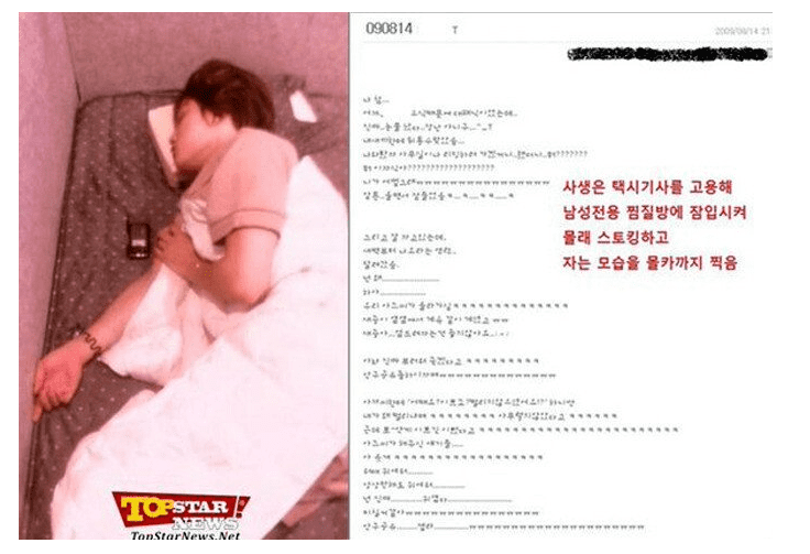 택시기사를 고용해서 남성전용 찜질방에 들어가 몰래 스토킹과 자는 모습 촬영한 모습이다.