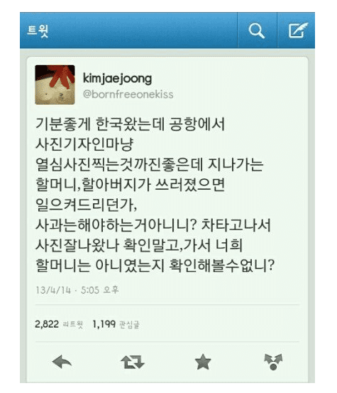사생팬들에 분노했던 김재중의 개인 sns 캡처.