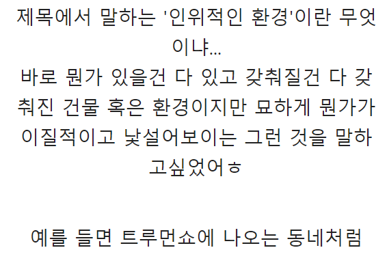 A씨는 “제목에서 말하는 ‘인위적인 환경’이란 무엇이냐…” 라 첫 문장을 전했다.