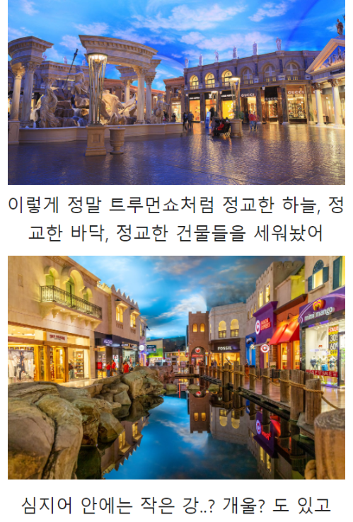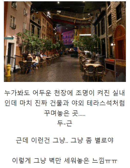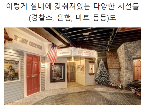 내부에 음식점, 편의 시설, 운동장, 숙박시설까지 갖추고 있다.
