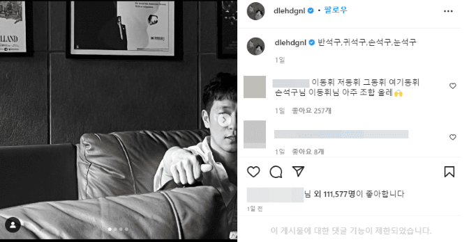 지난 7일 이동휘는 자신의 인스타그램에 “반석구, 귀석구, 손석구, 눈석구”라는 글과 함께 손석구의 사진 여러 장을 게시했다.