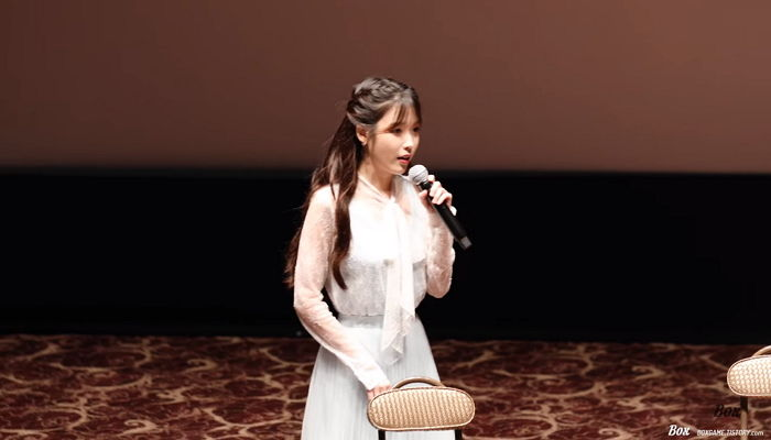 이때 팬 중 한 명이 구두를 신은 아이유가 걱정돼 “신발 벗고 해요. 위험해요”라고 말했다.