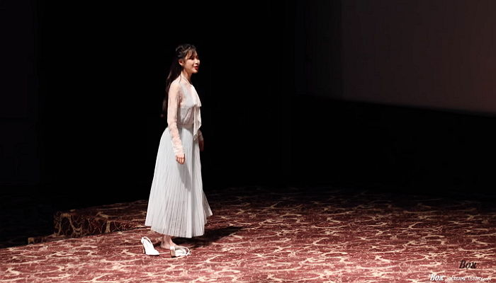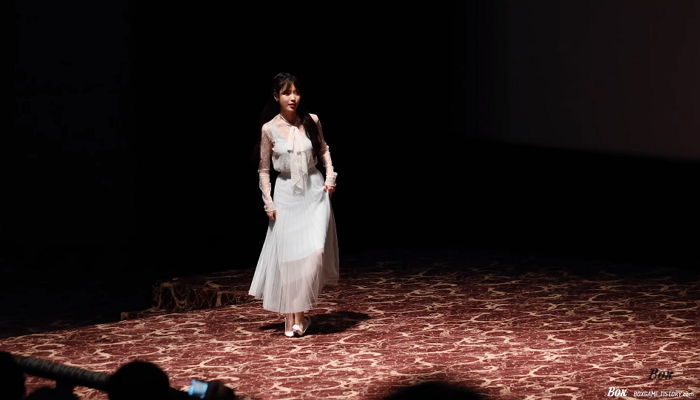 이날 아이유는 긴 웨이브 머리에 청순한 원피스를 입고 등장해 팬들의 환호를 받았다.