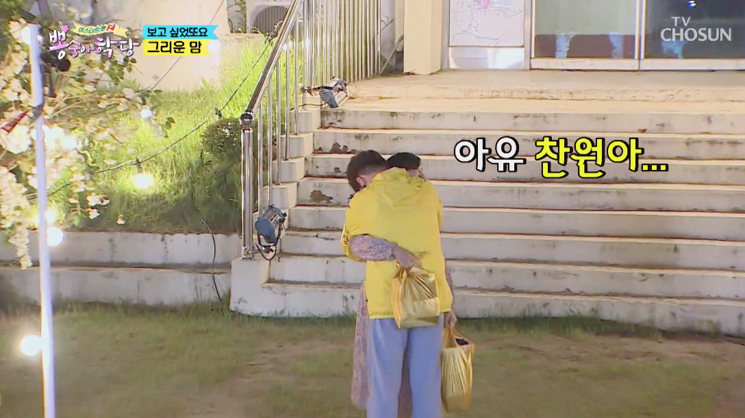 이찬원은 어머니를 보자마자 아무 말 없이 어머니를 꼭 끌어안았다. 이찬원 어머니는 “잘 지냈어?”라고 물었고, 이찬원은 “응”이라고 대답했다.