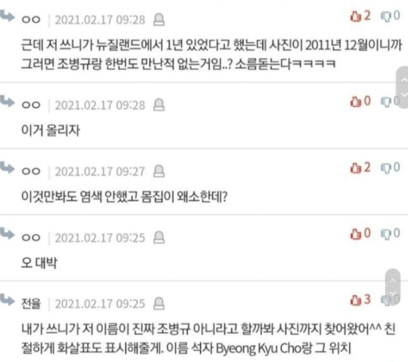 배우 조병규에게 학폭을 당했다는 사람의 글이 커뮤니티에 게재되어 논란이 되고 있는 가운데, 한 네티즌이 조작 증거를 발견해 공개했다.