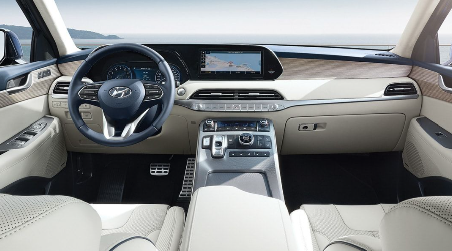 실내는 언뜻 보면 G90, 넥쏘, 싼타페 TM을 섞은 것으로 보이며, 버튼식 자동변속기, 10.25인치의 넓은 내비게이션, 넓은 실내 공간이 적용되어 있고 HUD도 앞 유리 직접 투영 방식을 사용하며, 싼타페 TM(7.4인치)보다 더 큰 9.7인치 HUD가 들어간다.