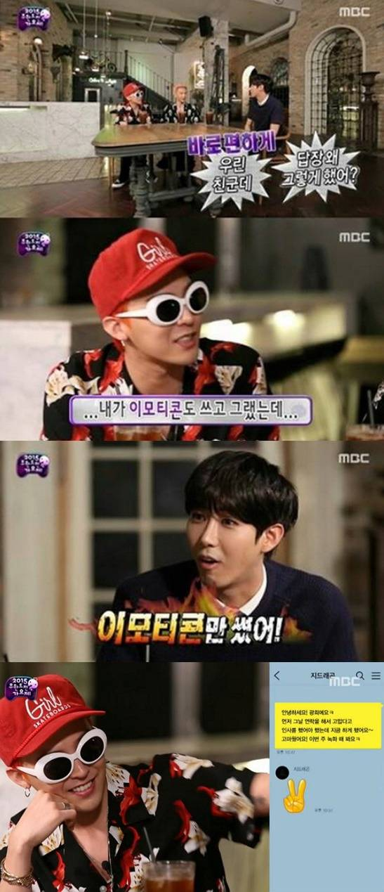 2016년에 지드래곤은 드디어 장문의 메세지를 광희에게 보내게 된다.