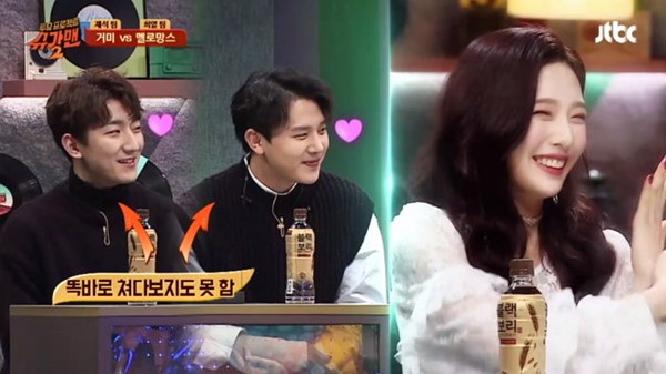 레드벨벳 조이의 라이브를 눈앞에서 접한 김민석은 어쩔 줄 몰라하는 모습을 보였다.