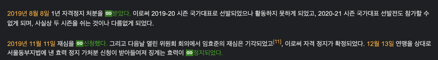이 불미스러운 사건으로 인해 임효준은 자격정지 1년 징계를 받았으며, 2020년 6월 중국 귀화를 택했다.