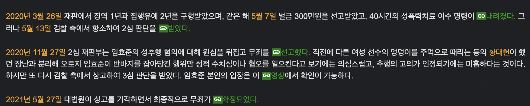 하지만 임효준은 2019년 6월 훈련 중 동성 후배의 반바지를 잡아당겨 강제추행 혐의로 재판을 받게됐다.