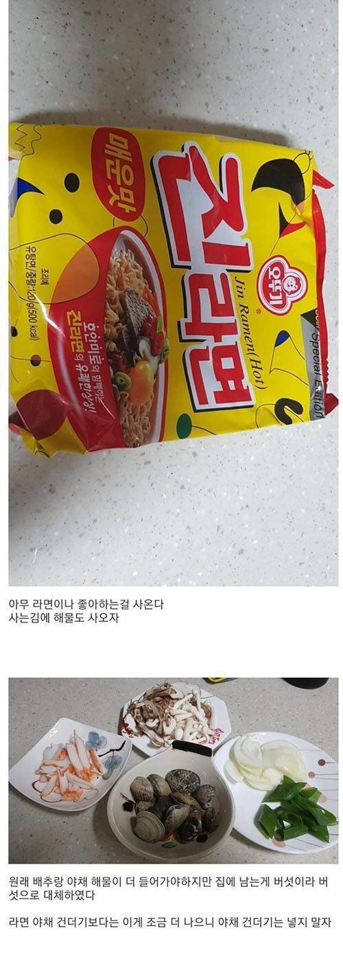 이에 글쓴이는 “라면은 그냥 후식으로 부숴먹었습니다.”라고 답해 웃음을 자아냈다.