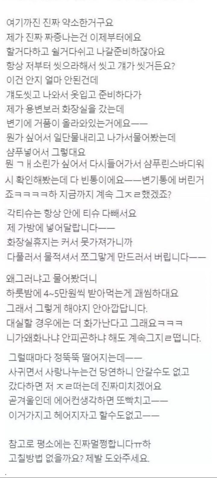 “남자친구가 모텔에서 하는 행동 때문에 이별을 고민 중입니다”