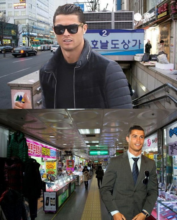 안양 지하상가의 이름이 ‘호날도 상가’로 바뀐 것과 함께 엄지를 들어오린 호날두의 모습도 볼 수 있다.