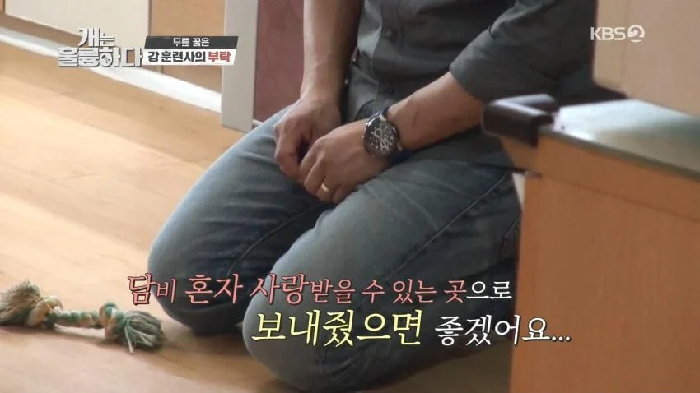 그러다 강형욱은 무릎을 꿇으며 “담비는 여기에 살면 안 된다. 담비 혼자 사랑받을 수 있는 곳으로 보내줬으면 좋겠다”고 부탁했다.