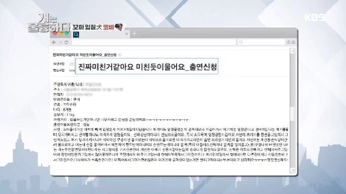 과거 방송된 KBS 2TV ‘개는 훌륭하다’에서는 보더콜리 코비의 입질로 고민에 빠진 의뢰인이 출연했다.